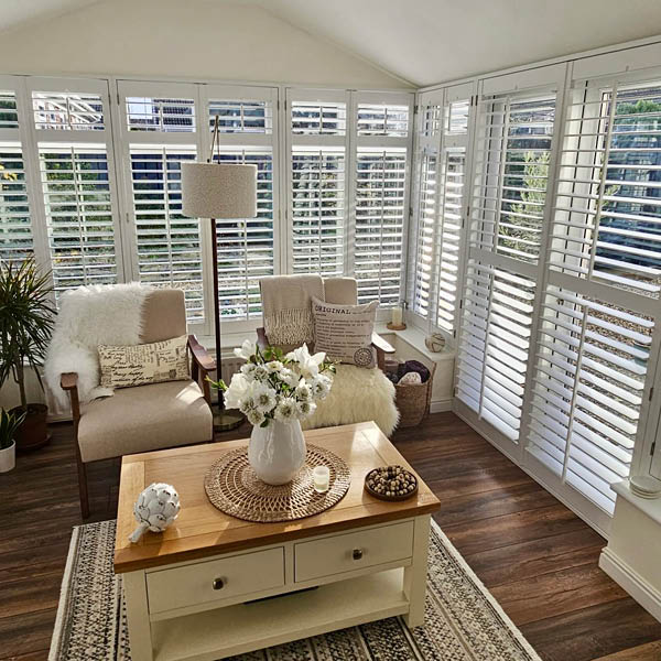 The installation of shutters has enhanced the interior and exterior of this conservatory. Adding very flexible light control and privacy when needed, as well as additional insulation at the glazing for colder months.